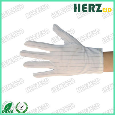 White Striped ESD Hand Gloves 100% Polyester With Conductive Carbon Line Every 10mm